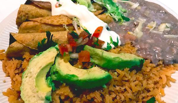 Flautas $15.50 (3) Corn tortillas fried to a crisp stuffed with chicken and topped shredded lettuce, avocado, sour cream and pico de gallo